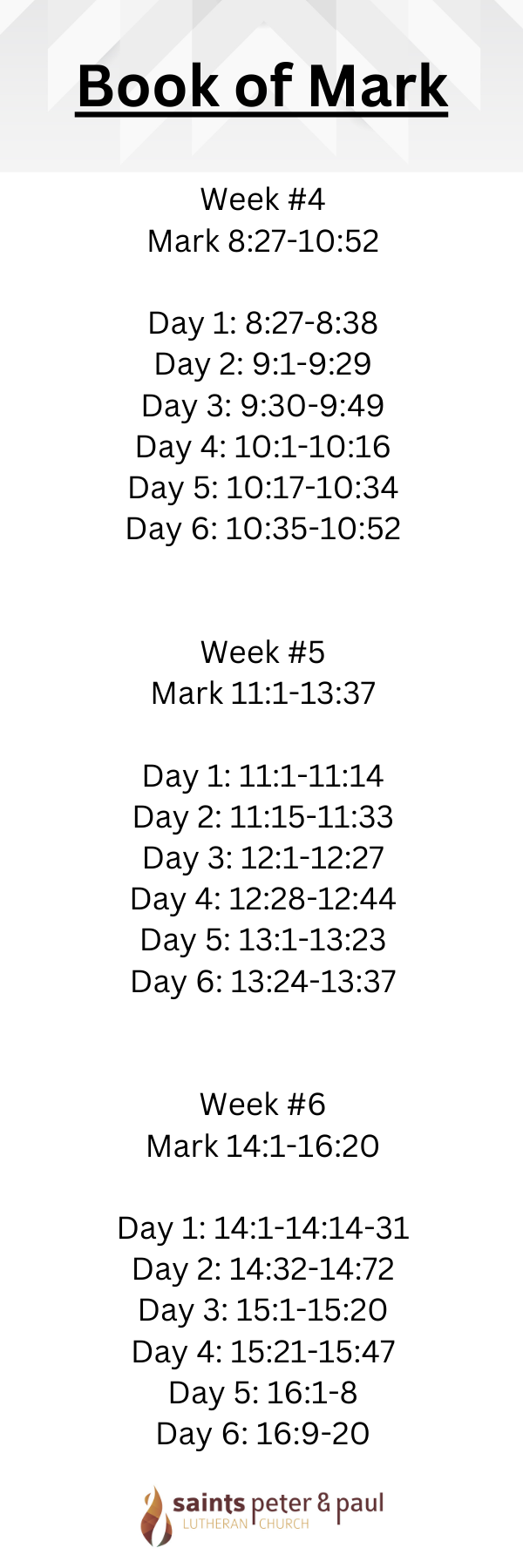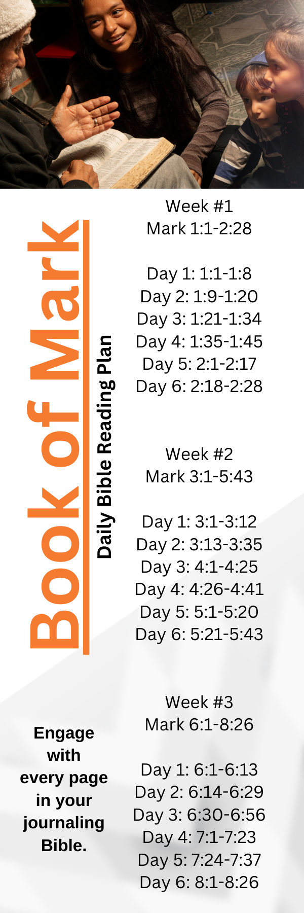 During these 40 days of Lent, we will be spending our time studying the Gospel of Mark. From Wednesday evenings, to Sunday sermons, Sunday Bible class, and daily Bible readings, you will experience the Gospel of Mark in different ways. The Gospel of Mark is uniquely different from the other portrayals of Jesus told by Matthew, Luke, and John. Most specifically, Mark is unique in his intentional literary style. Most scholars agree that Mark wrote his telling of the Gospel story in a way that was to be spoken out loud to an audience. The Gospel of Mark moves quickly, his details of story are rich and vivid, and many of the verbs in the original Greek language are in the present tense - which demonstrates frenzied activity. Jesus is shown in the Gospel of Mark to be moving immediately from one city to another, from one situation to the next. Much of this narrative style does not come through when we sit and silently read to ourselves this Gospel in our modern English language. But, as you read, imagine that you are listening to this story being told by a storyteller. Listen, as the disciples and other characters are introduced to you. Hear, as Jesus speaks sternly to demons and calmly to troubled souls. Take note of the conflicts that Jesus and his enemies engage in. And finally, listen - Jesus is alive! Engage with every page of your journaling Bible during the study of Mark this Lent.